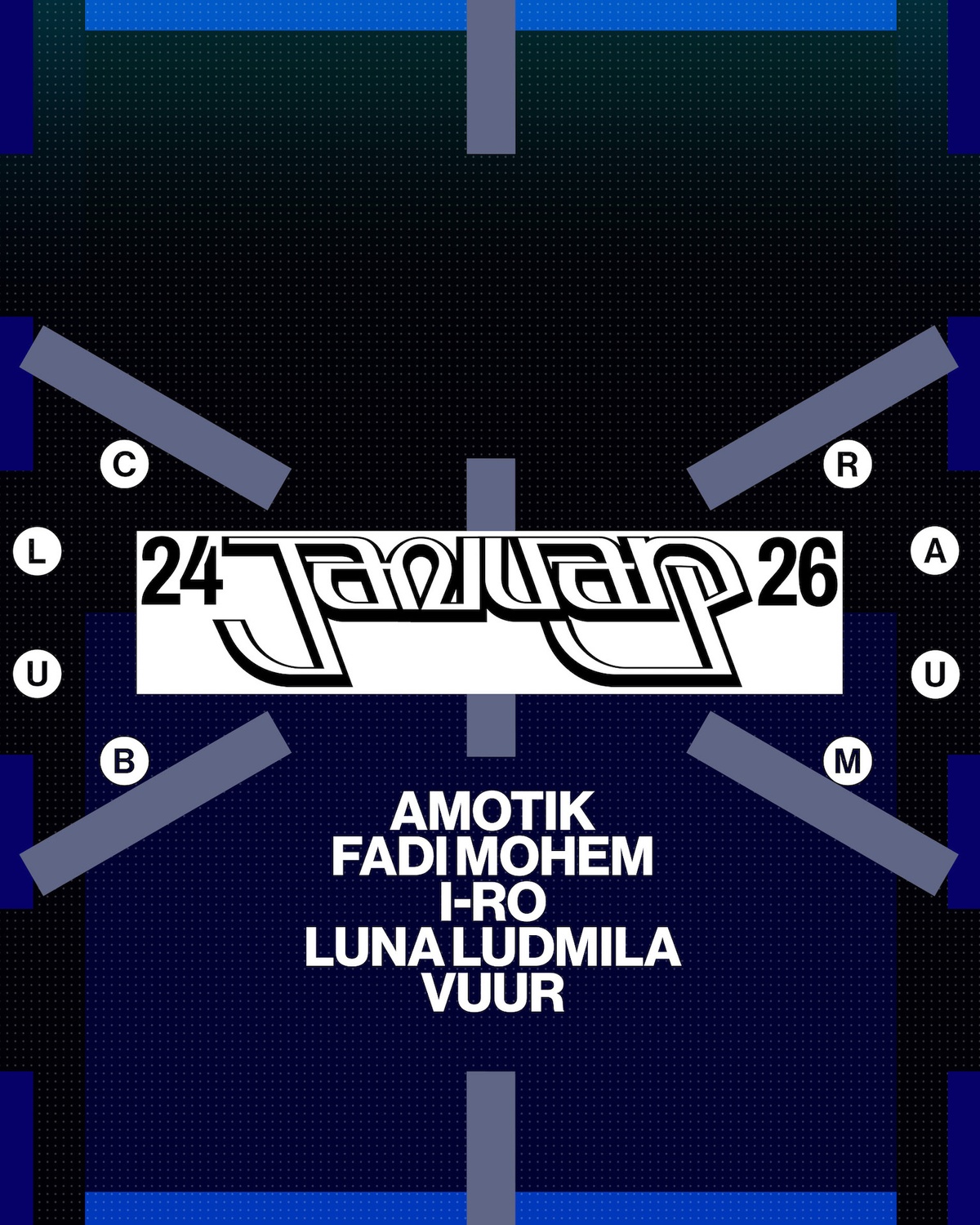 Saturday 24th January, local icons I-RO, Luna Ludmila, Vuur are joined by Fadi Mohem and Amotik bringing sounds of Berlin.
