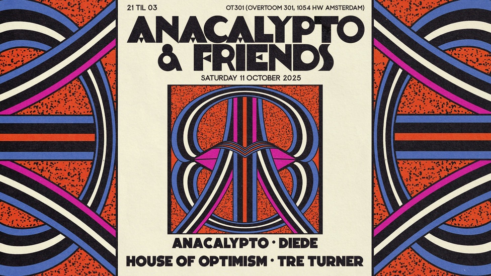 Anacalypto & Friends lands in Amsterdam for the first time on Saturday 11 October at OT301. The series is all about spontaneity, connection, and selector-driven sounds that drift between the edges of House and Techno.