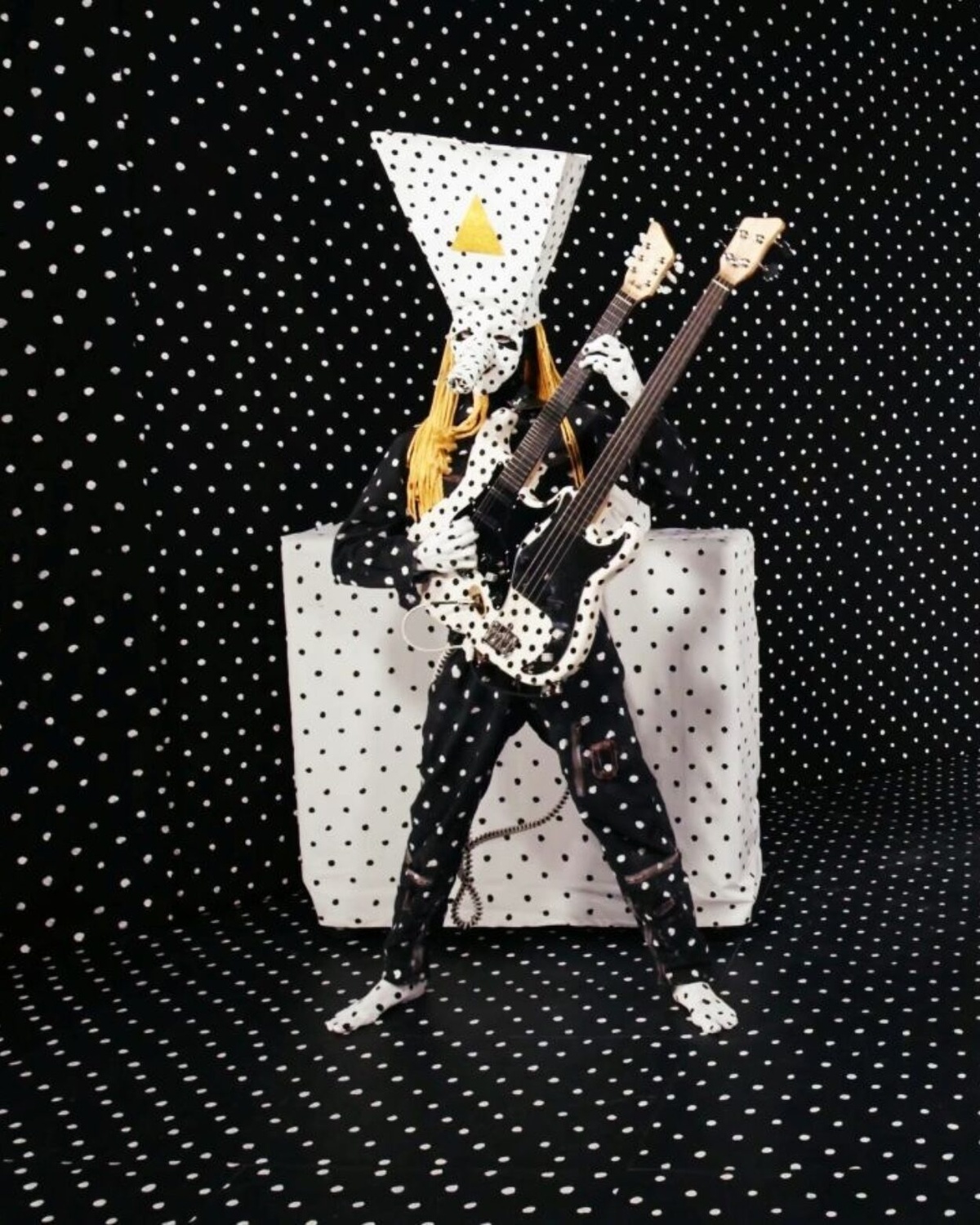Angine de Poitrine operates somewhere between a gig and performance art. The band consists of Khn (guitar, loop pedal) and Klek (drums), who remain anonymous, performing in Dadaist-inspired costumes and masks. Their live shows are built around pulsating drums, layered loops, and repetitive structures, with a heavy emphasis on rhythm and dynamics.