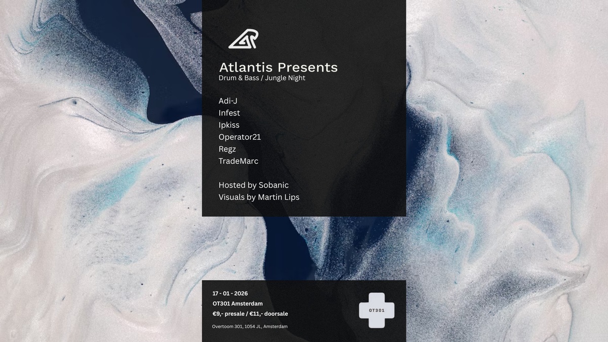 Atlantis founder and resident Ipkiss from The Hague is known for his deep passion for drum & bass, blending atmospheric, obscure sounds with soulful vibes. Inspired by legends like LTJ Bukem, Fabio & Grooverider, Response & Pliskin (also featured at Atlantis III in OT301), his style spans liquid funk to jungle, offering a fresh twist to the Dutch drum & bass scene. And it's proving to be successful -- Ipkiss has not only been featured on many drum & bass and jungle lineups the last few months, but has gotten many people interested in the boundary-pushing event Atlantis!