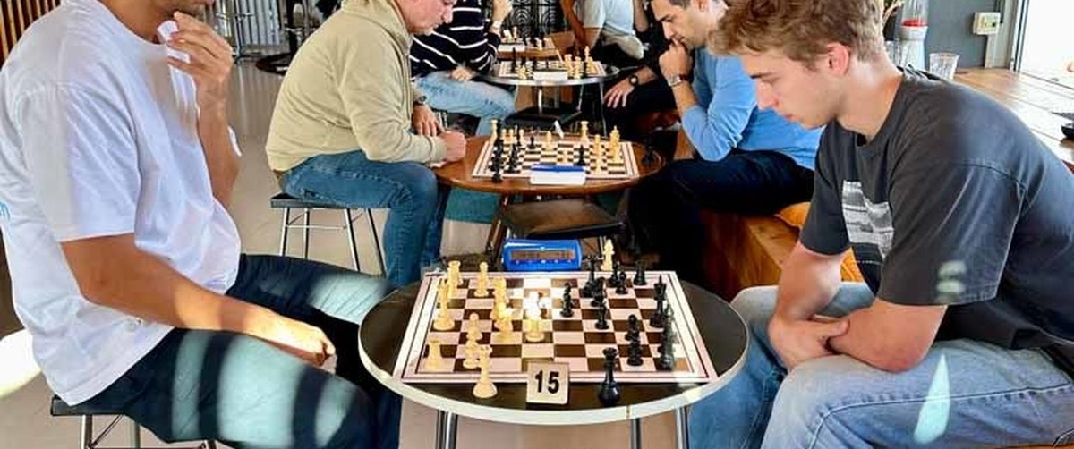 On Sunday afternoon at 16:00 we set up the boards at Tolhuistuin. Ten rounds of blitz chess, five minutes per game, all for just €5. Everyone can join: from beginners with shaky hands to brilliant grandmasters. We play at one of the most beautiful locations in Amsterdam, overlooking the IJ. The atmosphere is relaxed: music is playing, drinks are flowing, and we enjoy a perfect lazy Sunday full of chess and good company.