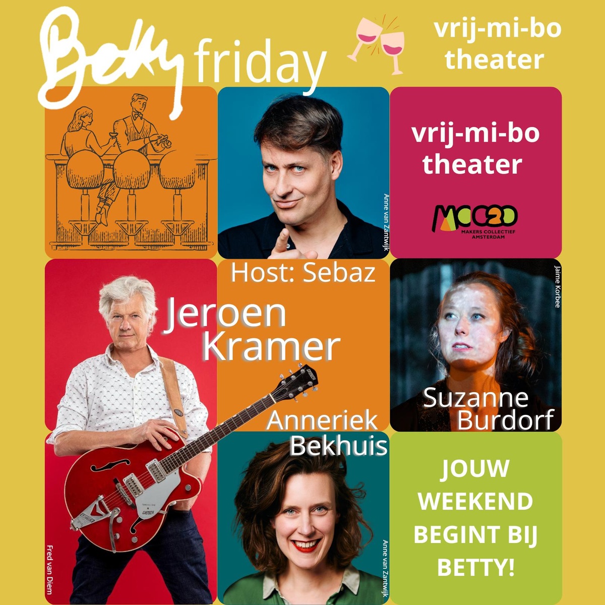Vrijdagmiddag 17.30 uur... weekend! Kom los van je week, los van je werk, kom naar Betty Friday. Met elke week een host, een beschouwing op de actualiteit, muziek, theater, gastoptredens en een goed gesprek.