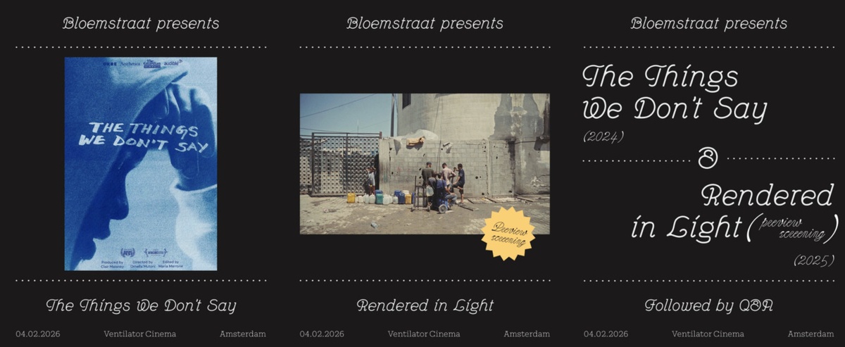 Bloemstraat presents a fundraiser screening of two short films: The Things We Don’t Say (2024) and Rendered in Light (2025). The screening will be followed by a Q&A with directors Ornella Mutoni and Maria Marrone.