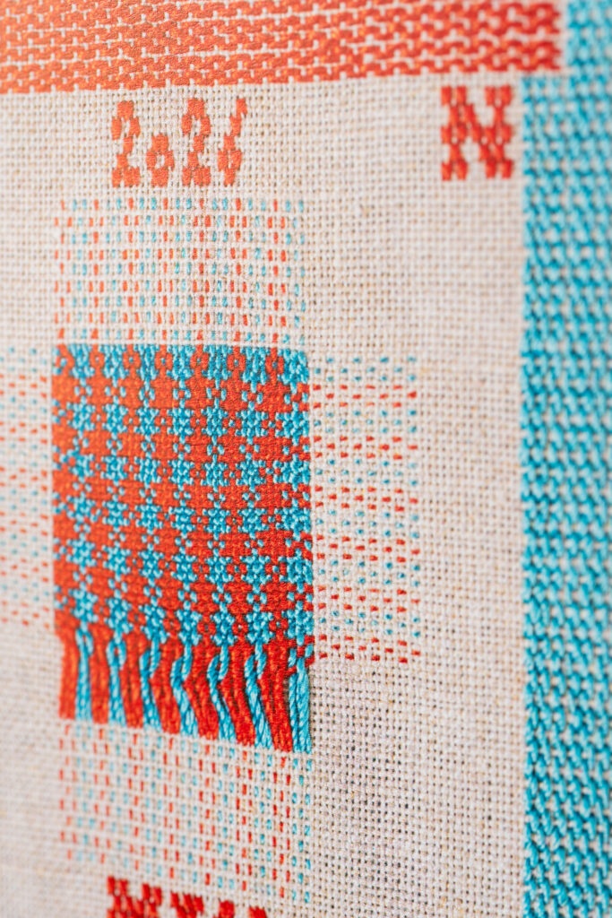 Historically, darning was taught to students as a means to mend the cloth of various domestic items. Students would darn both practical and decorative patterns over the damaged sections of fabric, imitating different designs depending on their skill level. Such functional and ornamental darning patterns are utilised in Calendar 2026: Quad to produce the shapes that constitute its design.