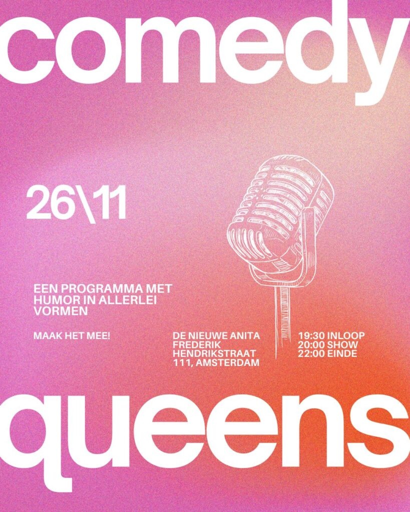 Zes geweldige vrouwen beklimmen het podium — elk met hun eigen stijl en blik op de wereld. De MC leidt je door de avond langs verrassende (muzikale) acts, en alles daartussenin.