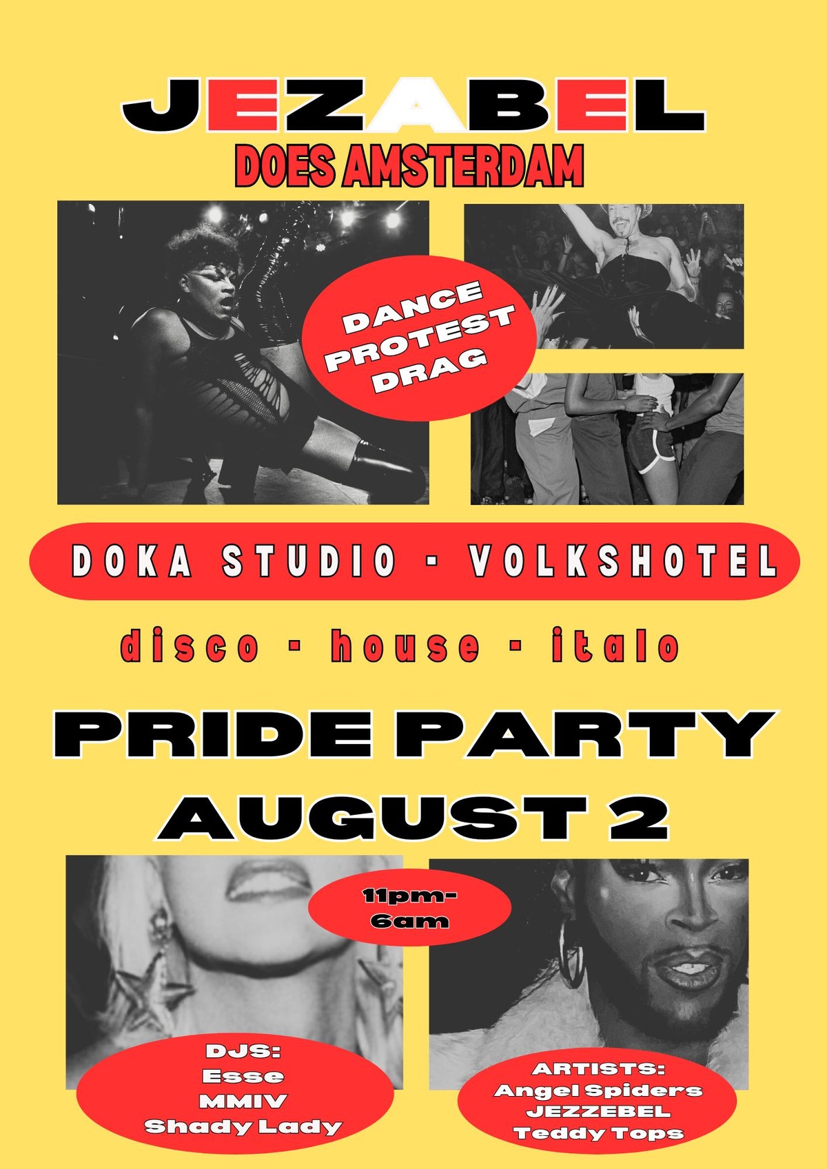 Jezabel is a queer space which weds the beauty of expression in dance, drag, and performative arts with music of the funky variety such as disco, italo and house. Giving a stage to both established and rising queer characters within the Netherlands. They consider queerness to be a form of not only expression but of protest and that is always shared within each event they host. After two years of hosting parties in Utrecht this will be their first edition in Amsterdam and what better way to celebrate than for Pride!