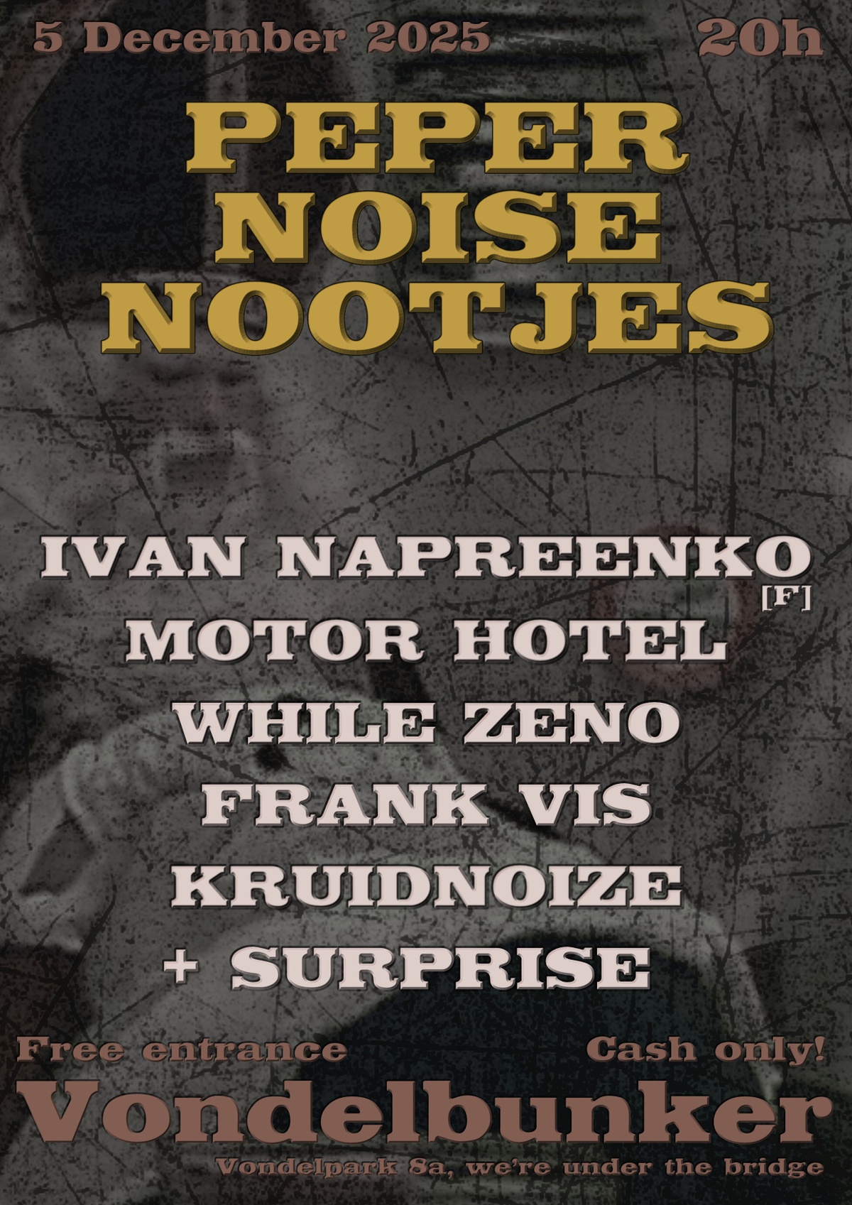 KruidNoize - A spontaneous duo of two noise artists: Kruytnooytje Rundtfunck and Sintherkidsfucker, abusing analogue electronic devices for deep diving into the essence of noise and drone sonorities. Raw chaotic energy and intuitive synergy molded into hypnotic soundscapes. No goals set, no borders exist, no easy way out.
