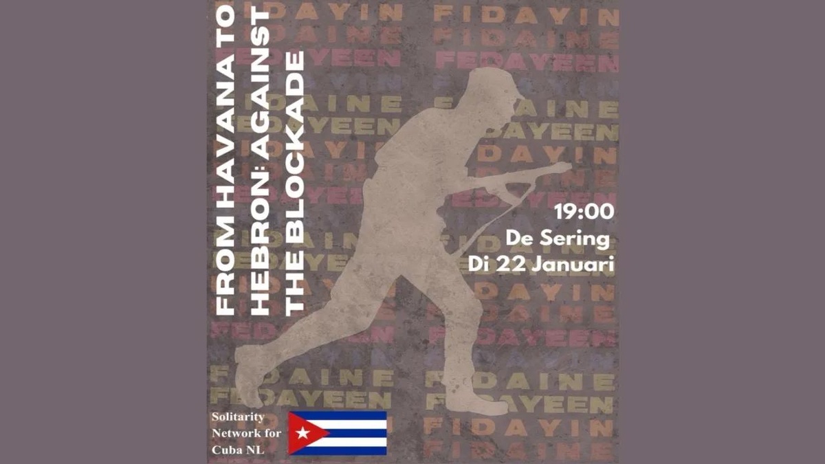 On November 17, just a month after the start of the genocide, Miguel Díaz-Canel, the President of the Republic and First Secretary of the Communist Party of Cuba, held a meeting with 144 young Palestinians studying in Cuba. During the meeting, the students presented keffiyehs to him and members of his government. In their conversation, Díaz-Canel reaffirmed Cuba's strong support for the Palestinian cause, stating, "We will not be indifferent. We condemn Israel's genocide in the strongest terms. You study in Cuba representing Palestine, and we will stand with you so you can fulfill your dreams". It is in this spirit of unwavering resistance that we are proud to organize this screening at De Sering in partnership with the Communistische Jongerenbeweging (CJB). Join us as we raise awareness and stand in solidarity.