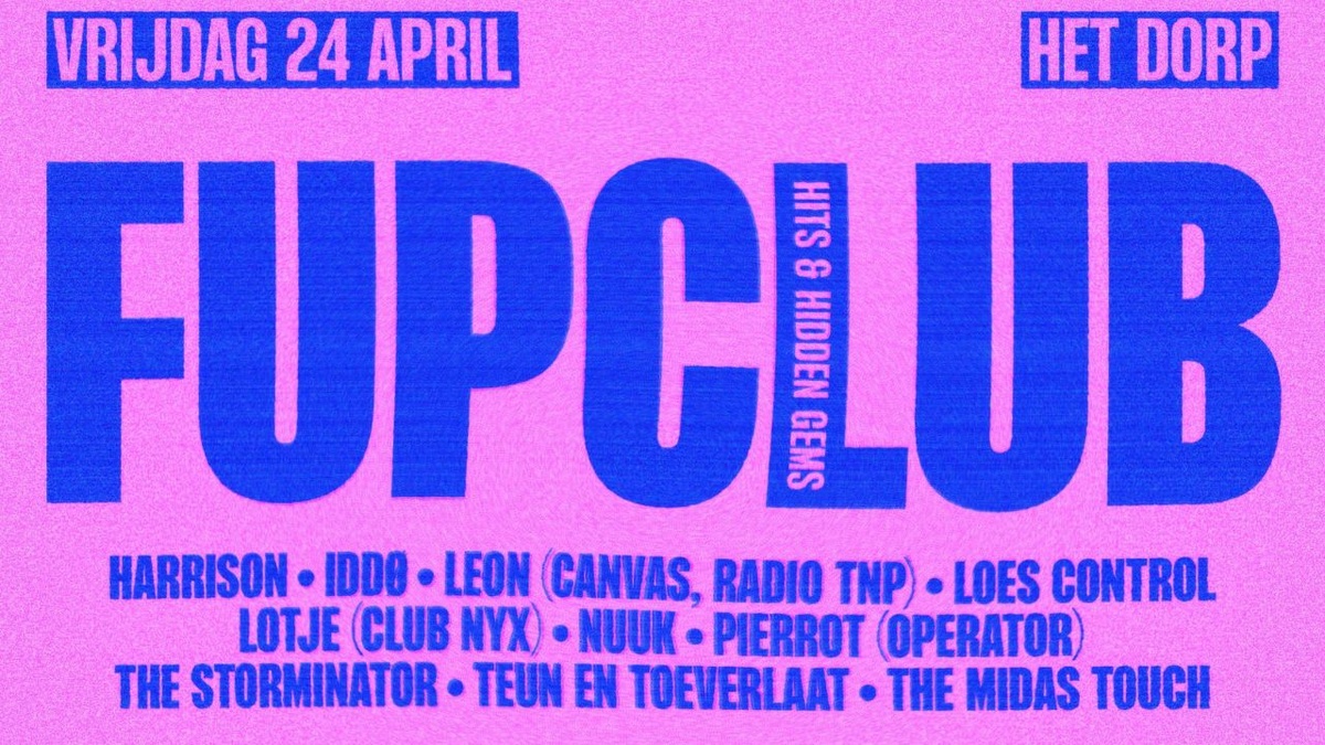 De dj's van FupClub presenteren: feest! 10 dj's, één gedeelde missie om jou aan het dansen te krijgen. Van hitjes tot house, van disco tot een vleugje duistere techno. Deze vrijdagavond belooft: geen gedoe, gewoon lekker dansbaar. We beginnen op tijd voor de vrijdagmiddagborrel en gaan door zolang het gezellig is.