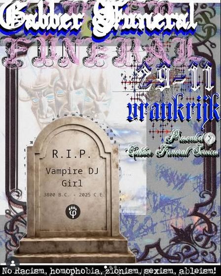 GABBER FUNERALA queer gabber night that blends Gabber with a short theatrical “funeral” performance, offering space for community, release, and a bit of playful satire.