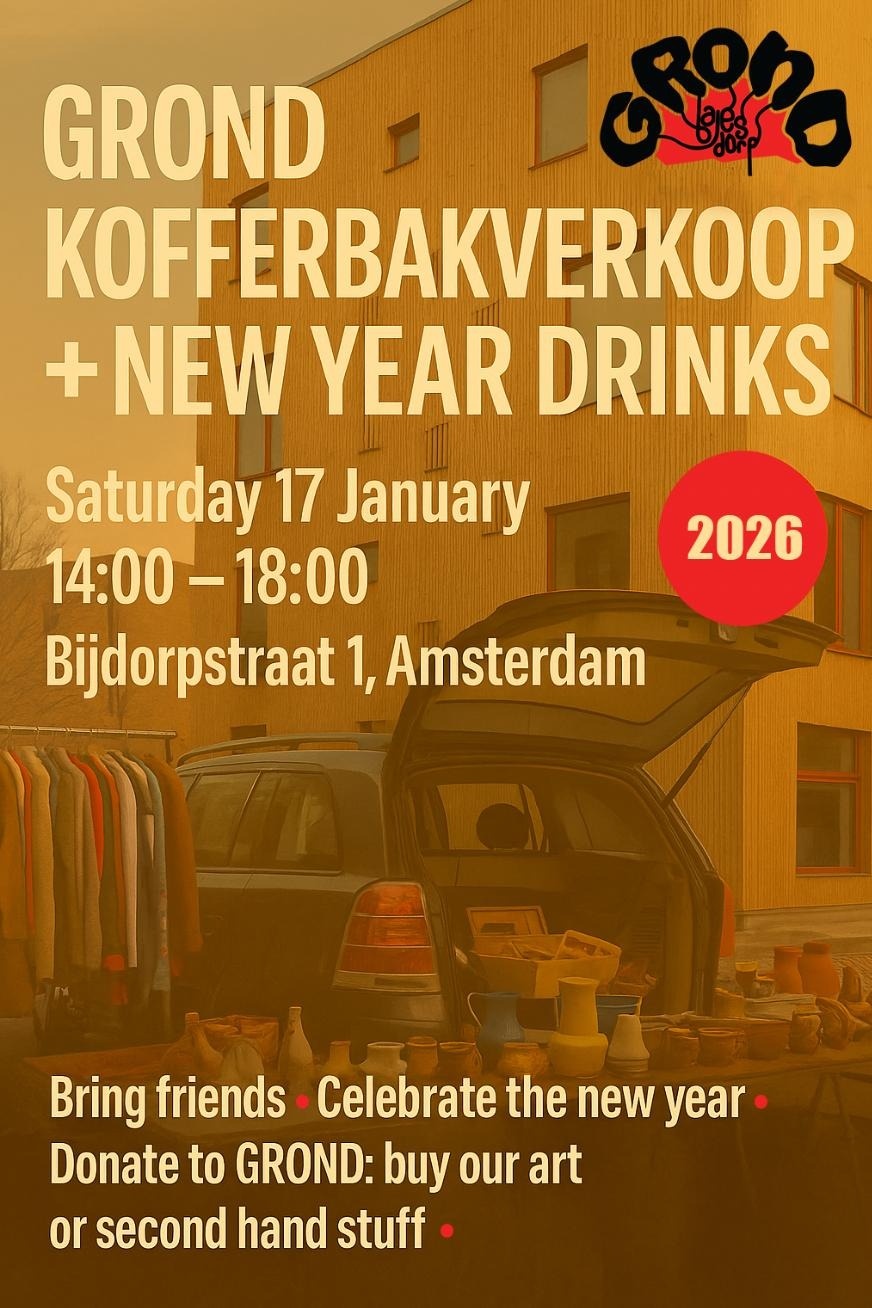 On Saturday 17 January, from 14:00 – 18:00, GROND organises its first yearly Garage Sale slash ‘Kofferbakverkoop’ in combination with New Years Drinks. Some items are free, some items will be sold based on donation, some of them have a fixed price.