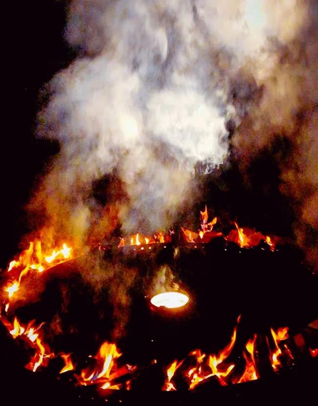 Levensvonk Ooit ging dit terugblikken en loslaten gepaard met het doven van alle huisvuren, waarna één heilig vuur werd ontstoken. Dat vuur brandt nu op de Loop van de Hoop en vormt de kern van het ritueel. Tijdens de tocht word je uitgenodigd iemand in je hart mee te dragen die je ontvallen is, haar of zijn levensvonk te herinneren en daar je eigen vuur mee aan te wakkeren. Woorden, een naam krijgen stem. Klanken ruisen door de bomen..