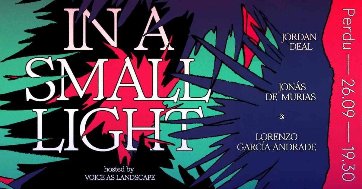 In a Small Light is the first Avonden of the 2025–26 season at Perdu. It is hosted by Voice as Landscape, an editorial line concerned with the relationship of voicings and territory, and it will introduce a new focus on song and its shifting roles across time. This interest has grown out of ongoing conversations with the different artists and collaborators over the past couple of years.