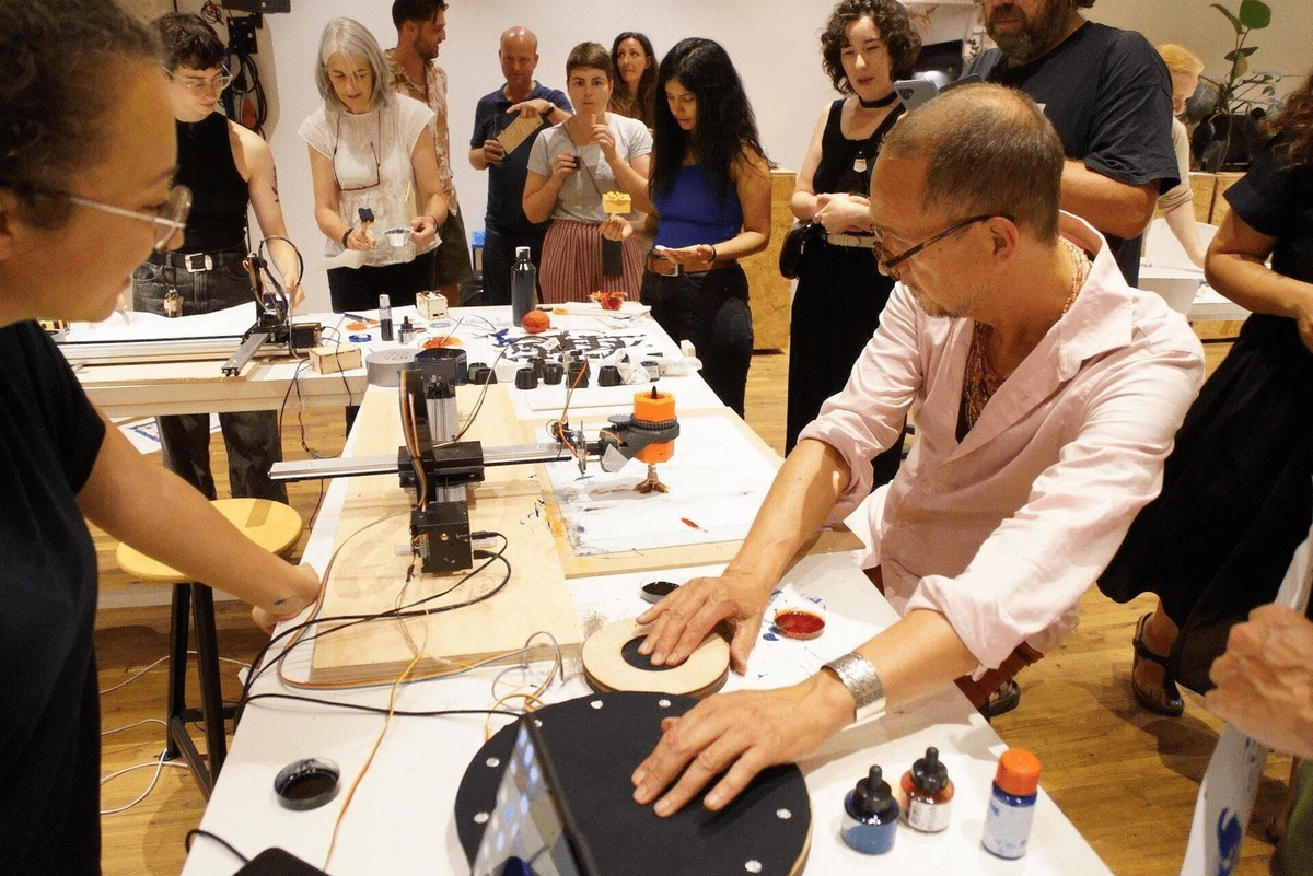 An interactive exhibition will showcase the iterations and development of the hacked machine and workflows, called HaptiColor, and the variety of outcomes created during the experimental phase of the project. There will also be an opportunity for the public to experience and experiment with the machine through haptic input, co-creating and contributing to a growing living exhibition.