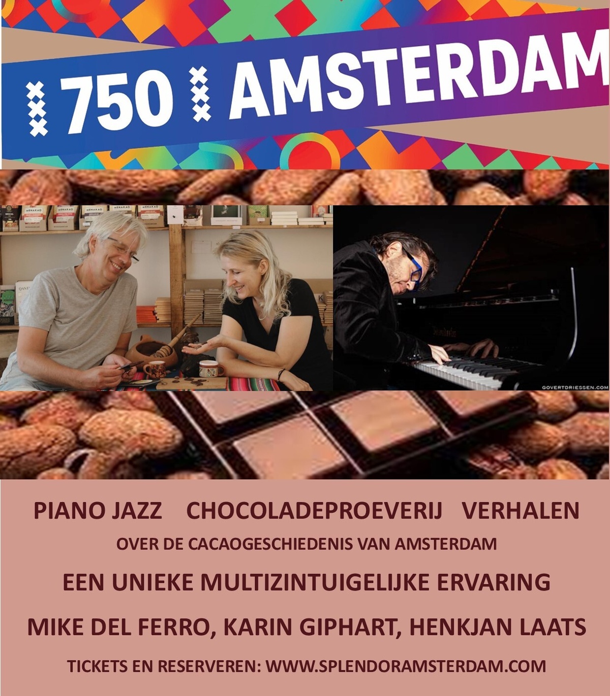 Featuring Splendor musician Mike del Ferro on piano, acclaimed author Karin Giphart sharing captivating stories, and Henkjan Laats, owner of the Cacaomuseum, guiding an exclusive chocolate tasting experience.