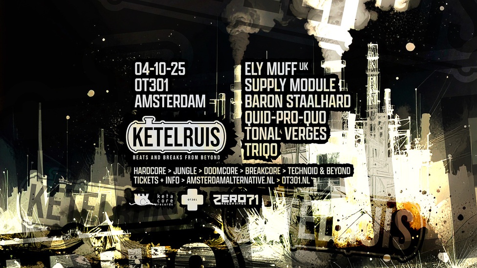 On October 4, OT301 transforms into a pulsating universe of alternative electronic music when Ketacore Records and Zero71 Recordings join forces again for a night packed with raw energy, heavy bass, and mind-twisting breaks. Expect an eclectic mix of breakcore, hardcore, tekno, Doomcore, IDM, and jungle — delivered by a lineup that thrives on intensity and exploration.
