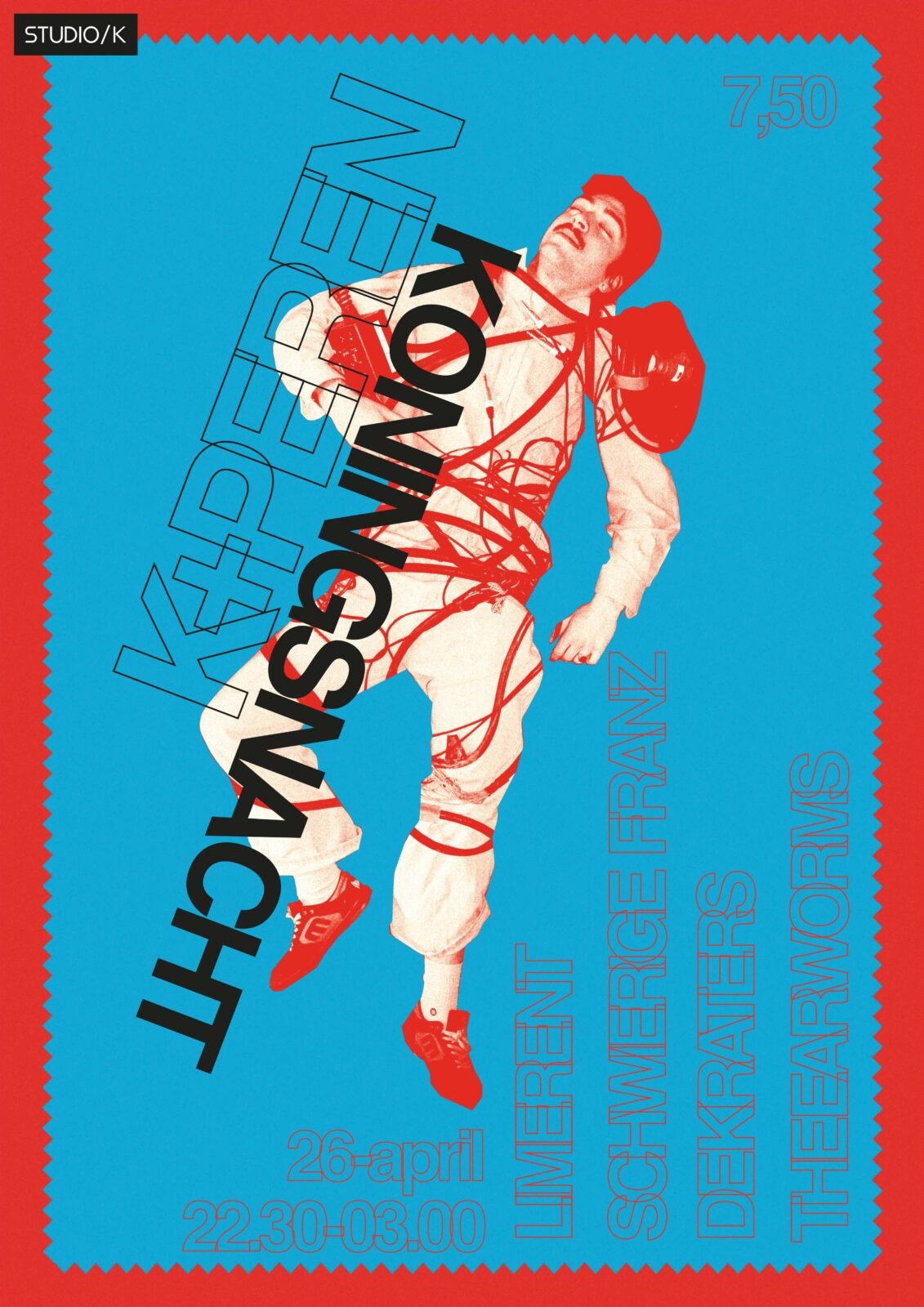 In de nacht van 26 april is er maar één plek waar je wil zijn: Studio/K. Bij ons geniet je van muziek van The Earwurms, Limerent, Schwierige Franz en Kraters, en waan je jezelf even koning(in). Voorafgaand draait er een speciale filmvertoning die een voorproefje geeft voor de rest van de avond.
