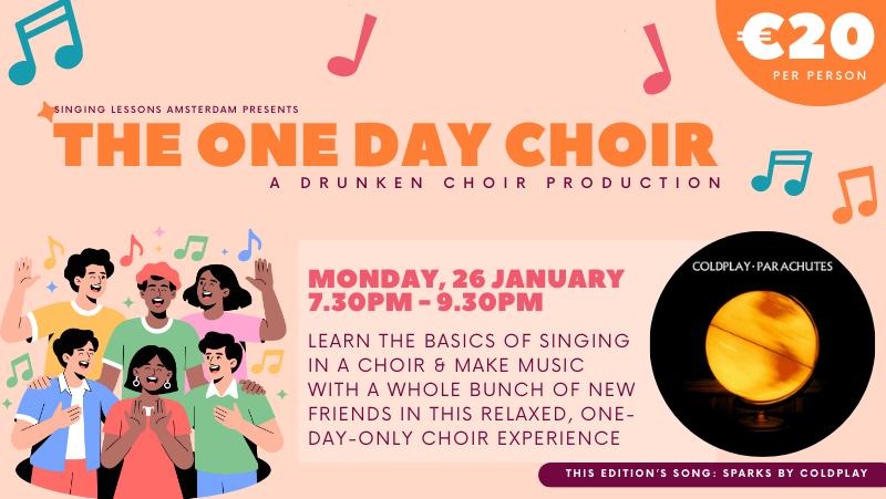 Now in a brand new, one day concept, the One Day Choir by Singing Lessons Amsterdam (www.singinglessonsamsterdam.com) is a streamlined version of their super successful Drunken Choir initiative, an easy way to enjoy choir singing in an inclusive environment with a whole new community of friends!