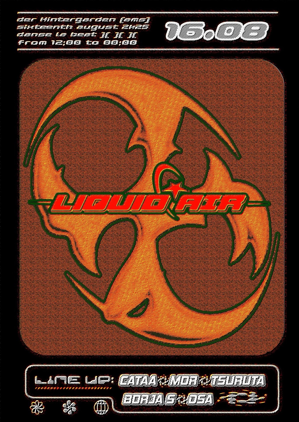 Liquid Air honors the underground and the roots of the ’90s sound always on vinyl. We’re not just throwing parties; we’re building a vibe where music, energy, and people connect naturally. Borja S Tsuruta Cataa Mør DSA