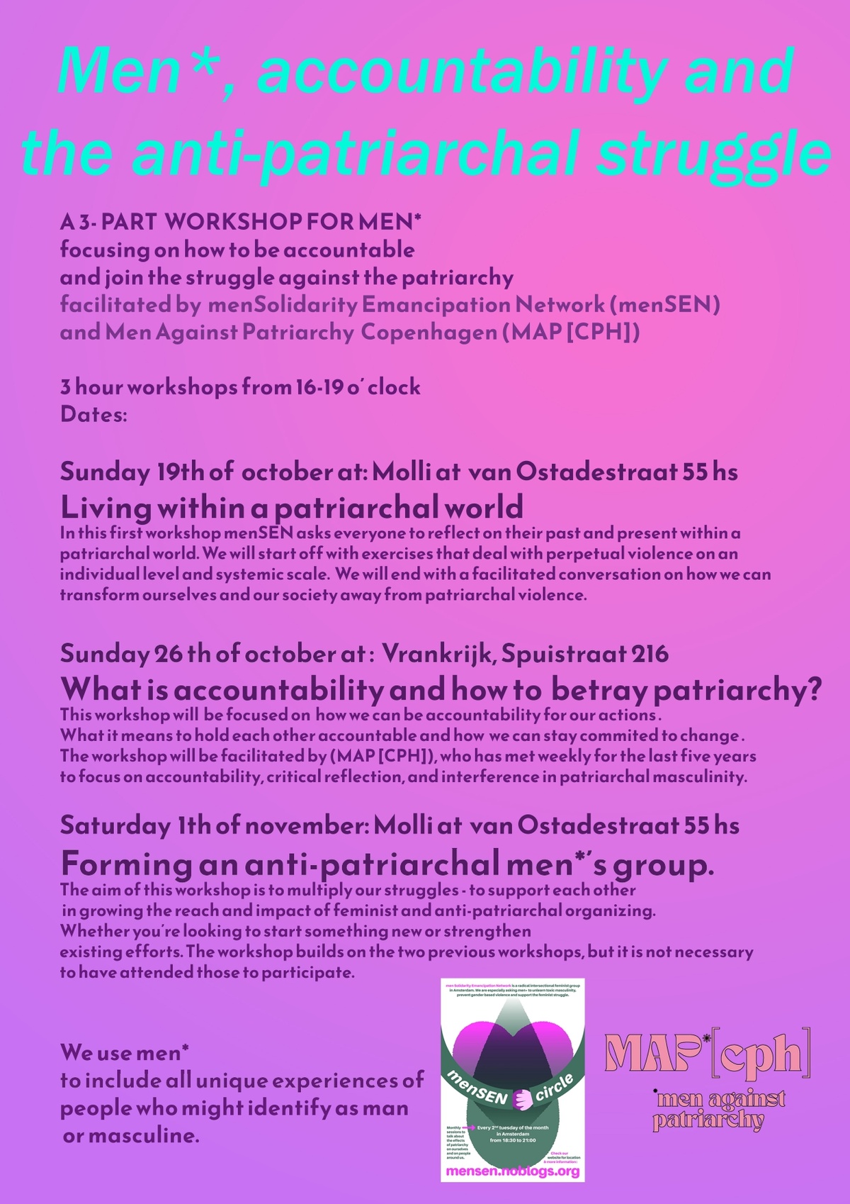 At the final session of the workshop series menSEN and MAP are here to provide tools and answers in order to help guide you in creating your own anti-patriarchal group. This is a skillshare though so we are also very excited to learn, reflect and share knowledge rather than having the perfect answer to any question (which is pretty much impossible).