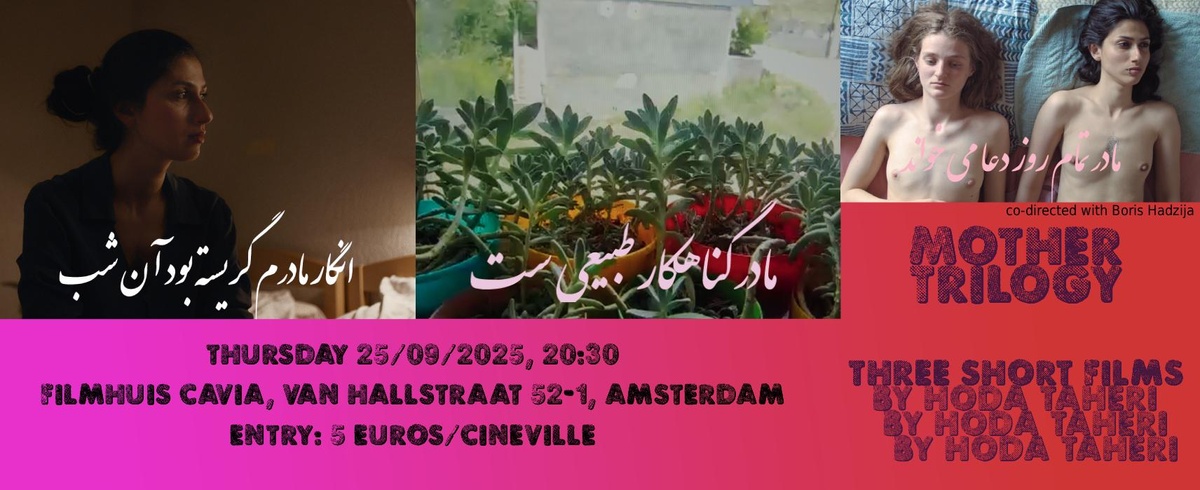 This Thursday, Cavia is proud to present the work of Hoda Taheri, a director from Tehran that currently lives and works in Germany. The three films that will be shown, Mother Prays All Day Long (2022), As If Mother Cried That Night (2023), and Mother is a Natural Sinner (2024), explore separate but common themes, such as abortion rights, the life and rights of refugees in Europe, gender, sexuality, relationships. The films have travelled through several festivals in and out of the Netherlands, and it is now time to have them shown in Amsterdam for the first time.