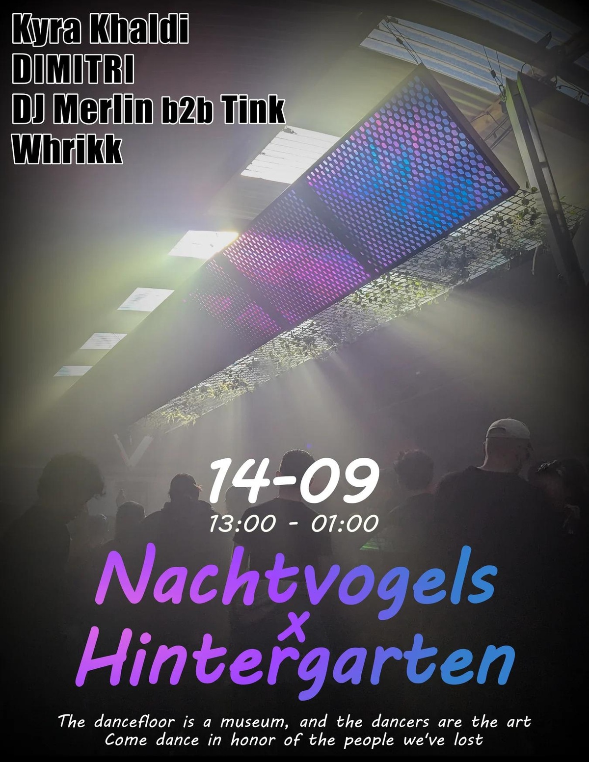 “You know September 14th is a Sunday, right?” The booking agents gasped. ”Yes.” I responded, 3 separate times. For it is a special date! I can’t wait to introduce you all (you know who you are) to my new favorite venue since the RLGC was demolished on January 6th. Please join me in the beautiful Hintergarten for a 12 hour journey of hypnotic rhythms, trance, funky grooves, rolling bass lines and psychedelic soundscapes. Move your body through a wide range of sounds and BPMs as our DJs show you just how broad, varied, and above all beautiful, electronic music can be. The dancefloor is a museum, and the dancers are the art. Come as you are and express yourself on the dancefloor. Let's dance in honor of the people we’ve lost ❤️