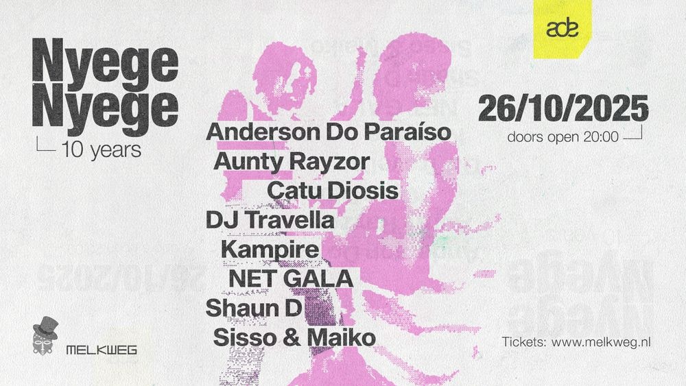 Nyege Nyege is the label putting the African electronic underground on the global map. From Kampala, they bring futuristic club music, fast-paced singeli, and experimental crossovers through Nyege Nyege Tapes, sounds you won’t hear anywhere else. Since 2015, the collective has been a breeding ground for producers and artists who break boundaries and showcase a vibrant new sound from East Africa. On the last day of ADE, we celebrate their 10-year anniversary in our OZ, with a solid line-up featuring Anderson Do Paraíso, Aunty Rayzor, Kampire, Shaun D & Sisso & Maiko.