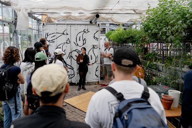 During the walk, we will also talk more about the current exhibitions and growing art installations that you find both on the outside and inside of our building. At the end of the tour, we'd like to invite you to stay for a tea from our Aquaponics greenhouse!