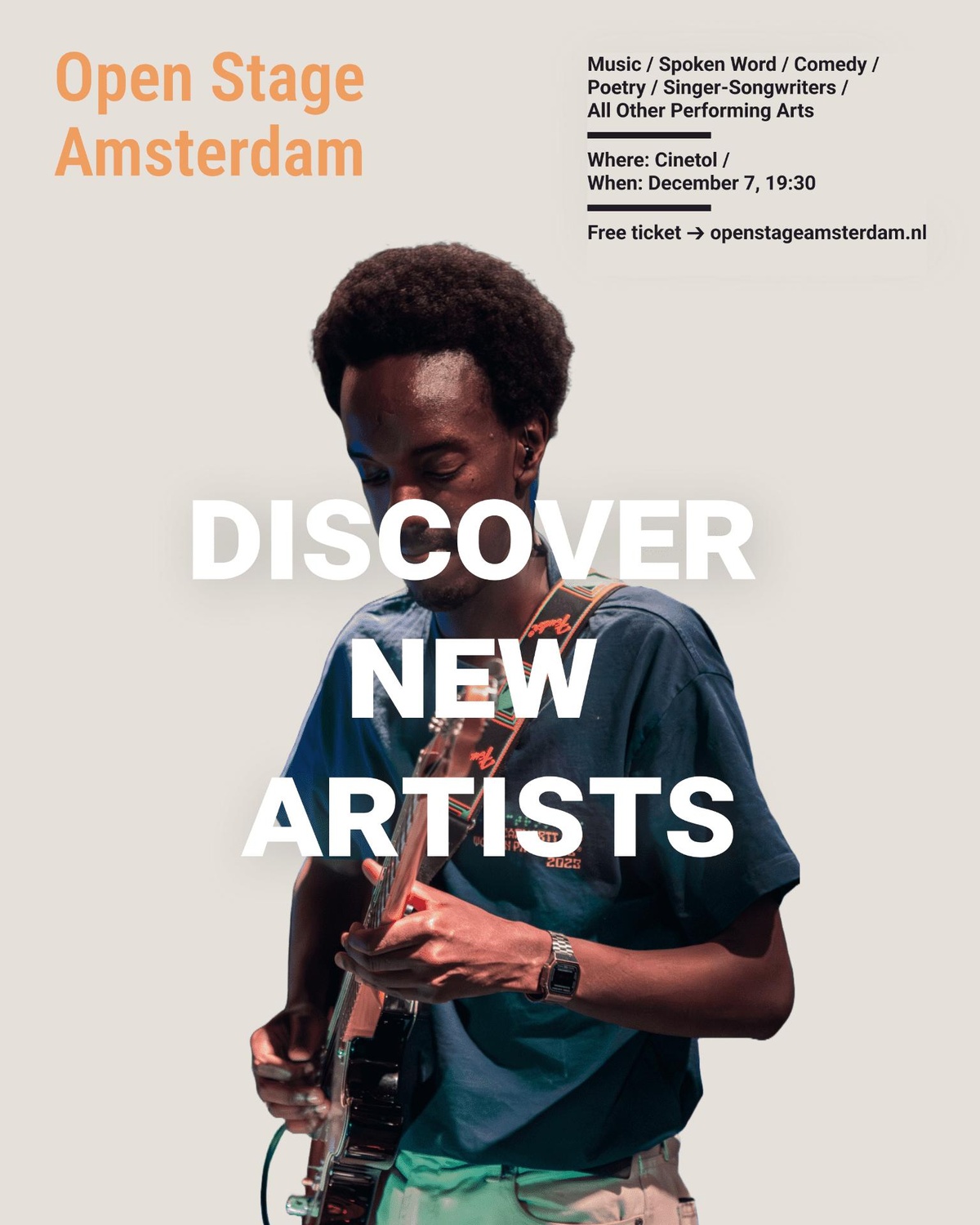 We zijn terug! Open Stage Amsterdam is een showcase van livemuziek, poëzie, storytelling, comedy, dans en meer. Ontdek artiesten live! Kom meezingen, dansen en genieten. Kom naar onze fantastische show met verrassende acts. Een avond vol humor, meezingen en dansen.