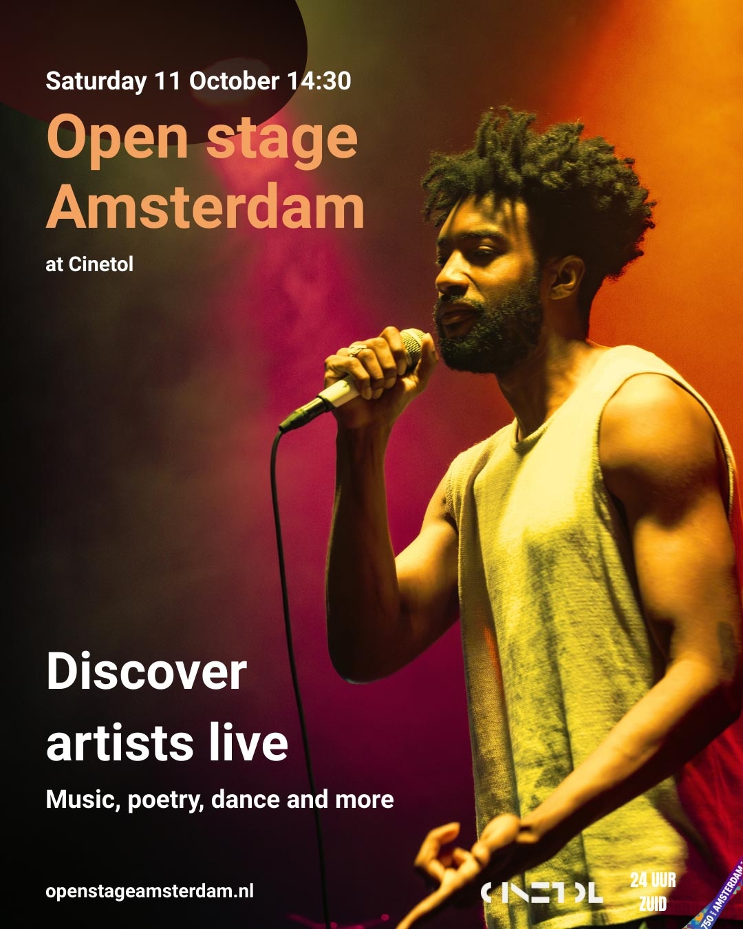 Acht uiteenlopende acts zullen het podium betreden om te vermaken en te raken. Samen genieten we van een gevarieerd programma waarin ontmoeting en verbinding centraal staan. Dit programma wordt georganiseerd door Open Podium Amsterdam en maakt deel uit van 24H Zuid.