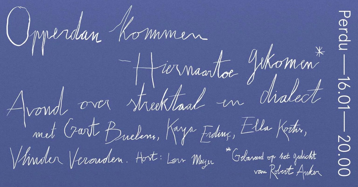 Tijdens ons programma Opperdan kommen – Hiernaartoe gekomen buigen diverse dichters, kunstenaars en denkers zich over de rol die streektaal en dialect vandaag in het Nederlandse taalgebied spelen: als dragers van geheugen, als motoren van verbeelding en als kritische tegenstem in een cultuur die steeds uniformer wordt.
