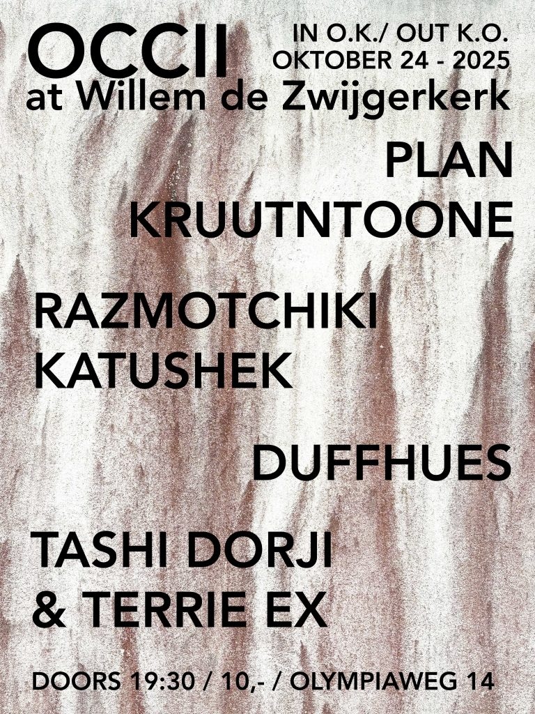 IN O.K./OUT K.O! at de WILLEM DE ZWIJGERKERK w/ PLAN KRUUTNTOONE + Tashi Dorji & Terrie Ex + RAZMOTCHIKI KATUSHEK + DUFFHUES