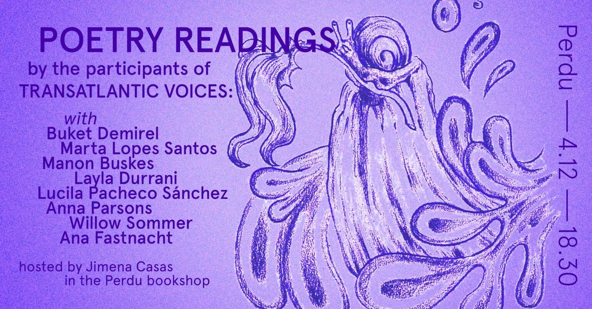 Op een late herfstmiddag komen we samen in de boekhandel van Perdu om de Transatlantic Voices workshopserie af te ronden met een intieme, collectieve voordracht van de deelnemers. Iedereen zal stukken en gedichten voordragen die zich tijdens de workshopserie hebben ontwikkeld.