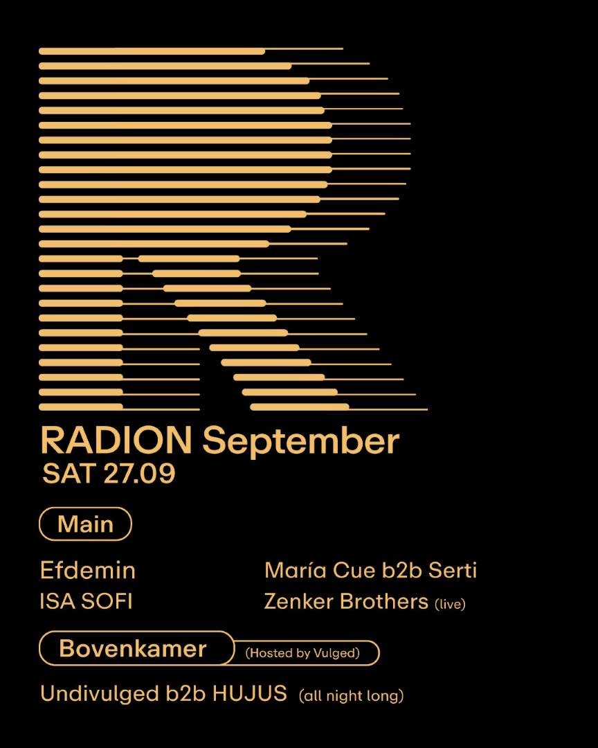 Zenker Brothers bring a rare and exclusive live set to Amsterdam, Efdemin takes the helm with his signature craft, and ISA SOFI, one of the scene’s brightest new talents, closes with full trust to take us into the morning.