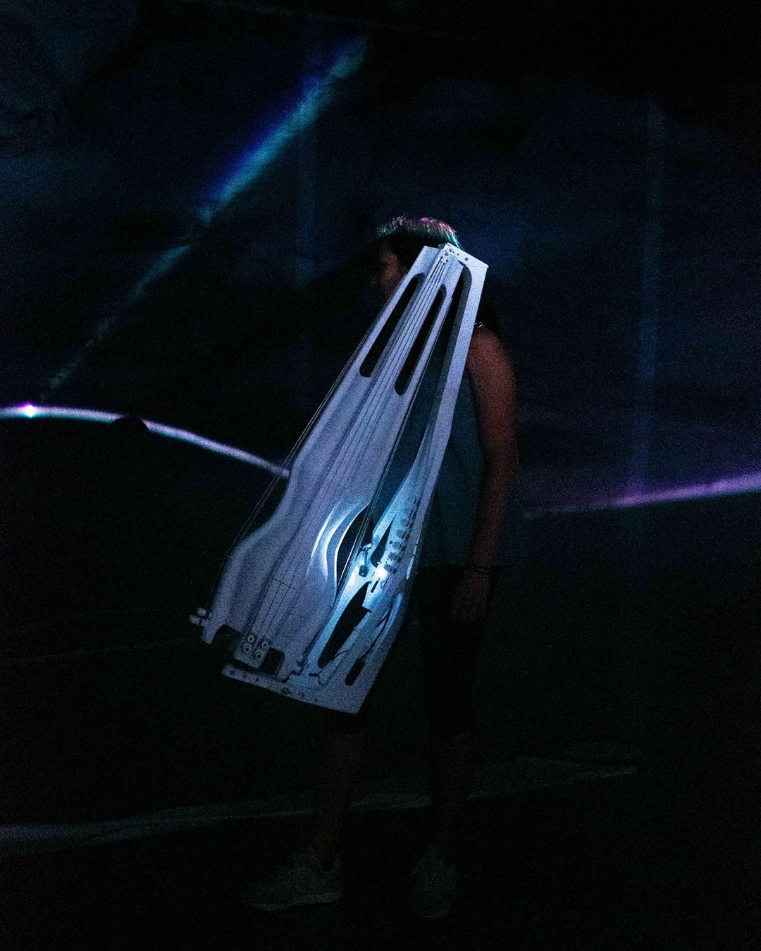 Deelnemers dragen sensoren die hun individuele hartslag en concentratie meten. Performer Rafaele Andrade gebruikt deze live data als een dynamische partituur voor haar zelfgemaakte muziekinstrument. In een directe feedbackloop onthullen de generatieve visuals van Superposition alleen de biologische data die de performer heeft geselecteerd om de muziek te beïnvloeden. Het publiek is getuige van het precieze moment waarop een intern, individueel ritme een externe, gedeelde compositie van geluid en licht wordt.