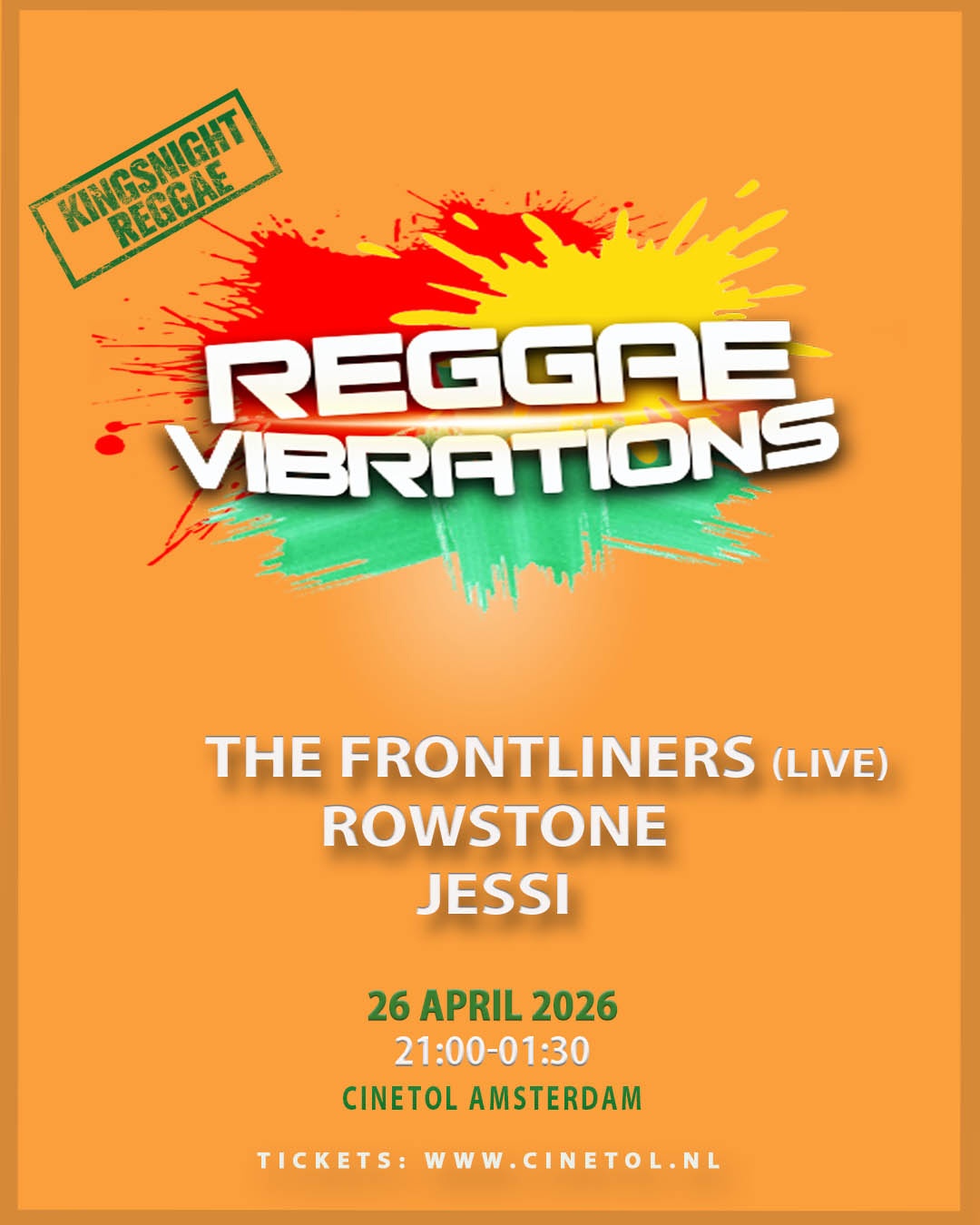 Reggae Vibrations is op 26 april terug in Cinetol voor een derde Kingsnight reggae editie. Het is de plek met good vibrations, waar je kunt genieten van de nieuwste en klassieke Reggae Dancehall, met een vleugje Afrobeats.
