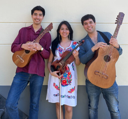 The so called Son Huasteco or Huapango, is warm and joyful music, played and sang by the three huapangueros: César Puente on jarana (5 strings guitar), Fátima Hernández on the Violin and Pablo Suaste on Guitarra Huapanguera (8 strings guitar). The trio combines poetry, improvisation and dance into colorful songs.