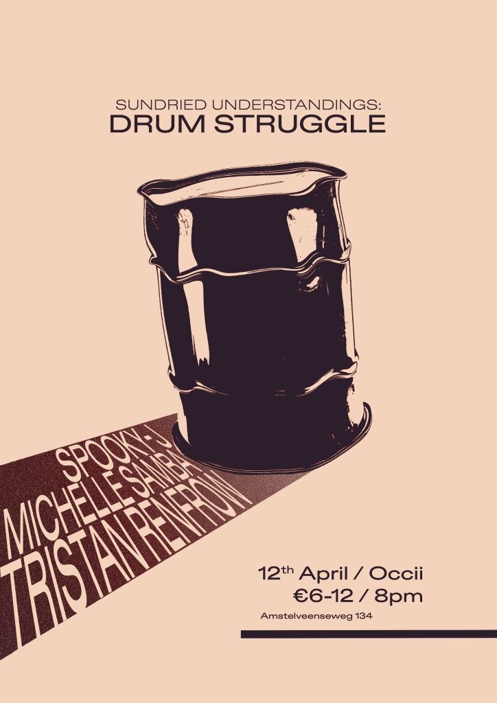 Spooky-J is the alias of drummer and producer Jacob Maskell-Key. For this show he premiers his explorations into solo drumming and effects processing. After years in Amsterdam’s improvised music scene, Jacob began experimenting with live effects manipulation and triggers, weaving intense, sweat-ready-doom-dance soundscapes. He’s also the founder and drummer of the Uganda-based percussion group Nihiloxica (Nyege Nyege, Crammed Discs) and the creator of the label Spooky Shit, which showcases his more dance-oriented music.