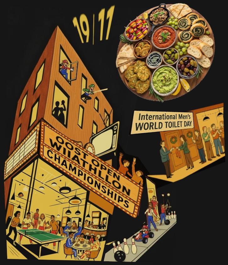 TONIGHT: On ‘International Men’s World Toilet Day‘ we celebrate the festive opening of the new indoor windows and doors of our club house with the first Oost Open Wiiathlon Championships. 🌶️ Vega VoKu: Tappas Buffet by Chef Judith (reservations appreciated) 🎮/🎦 Oost Open Wiiathlon Championships: MarioKart, Bowling, Archery, Table Tennis & Swordplay (20h30) ⚽️/📺 UEFA Women’s CL: Arsenal – Real Madrid (21h) 💈 Junglespeed: Master Table Games 🏓 HoodCup: Season II 🟤 Sjoelbak Highscore Hunting🎲 Broken Dutch Boardgames