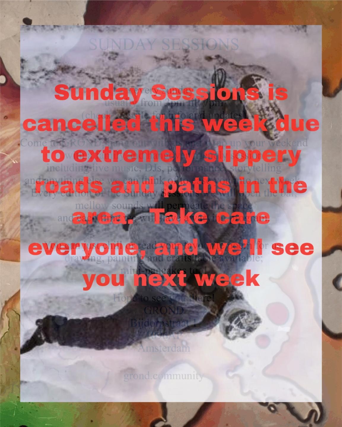 Sunday Sessions is cancelled this week due to extremely slippery roads and paths in the area. Take care everyone, and we’ll see you next week.