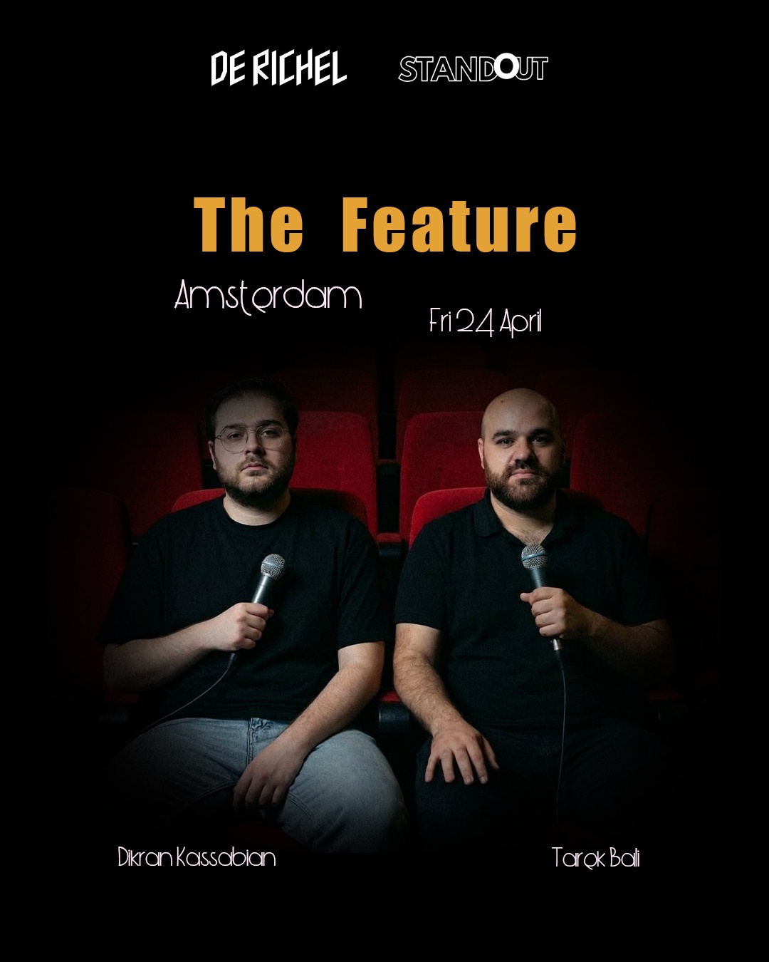 استعدوا لليلة ستاند أب كوميدي قوية بآمستردام مع ديكران وطارق على المسرح.
