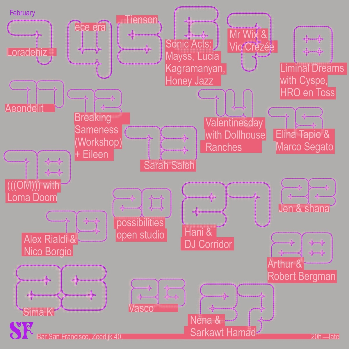 Amsterdam's alternative agenda. Experimental gigs, activist talks, secret cinema, DIY workshops, radical poetry, comedy haha, and dance dance dance. Always off the radar, definitely not beige ❌❌❌