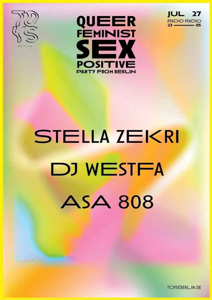 ::: comeback of famous queer feminist sex-postitive TOYS party from Berlin ::: TOYS - radically playful. Free from constraints, queer, solidary, feminist and musically versatile - between leftfield house, bass, garage, acid, dub, techno and trance. Just no testosterone-overdosed big room techno or dull, uniform tech-house mash. With TOYS Berlin, we want to create and maintain an open space where everyone can be. Dance. Be free. Cuddle up. Undress. Play. Celebrate music, awareness, diversity, generosity and solidarity. take off your shoes. make yourself at home. join the joyful TOYS Berlin pride congregation and praise our new lords and saviors of forward-thinking electronic music, who saved our souls from conservative tech-house cardinals and testosterone overdosed unitary techno shittery. in recent years, excited hipsters have been tossing around words like 'techno', 'house’, and 'trance' like confetti. but at TOYS, we honor our saints - Alinka, Avalon Emerson, Dauwd, Elkka, Octo Octa, Sam Goku, Tom Trago & many more - in diverse and torrid settings. come (un)dress, play, and dance to truly impelling tracks, and free yourselves for everyone's cantilevered satisfaction in this divine service in a dimly lit queer feminist, sex-positive, post-modern church of pulsating indulgence. TOYS Berlin aims to be a safe space of personal and musical expression for everyone regardless of their gender, race, sexuality, (dis)ability, religion, class, age or body type. It is not a place for sexism, discrimination, queer-/trans-/homophobia, body shaming, misogynic behaviour, unwanted touching, sexual harassment, or violence. Please make sure there is consent before approaching any physical contact. If you should observe or experience an inappropriate situation, please don't hesitate to let the promoters/ bouncers/ bar staff know and it will be swiftly dealt with. There will be an additional awareness crew in reflective vests and all gender dark rooms.