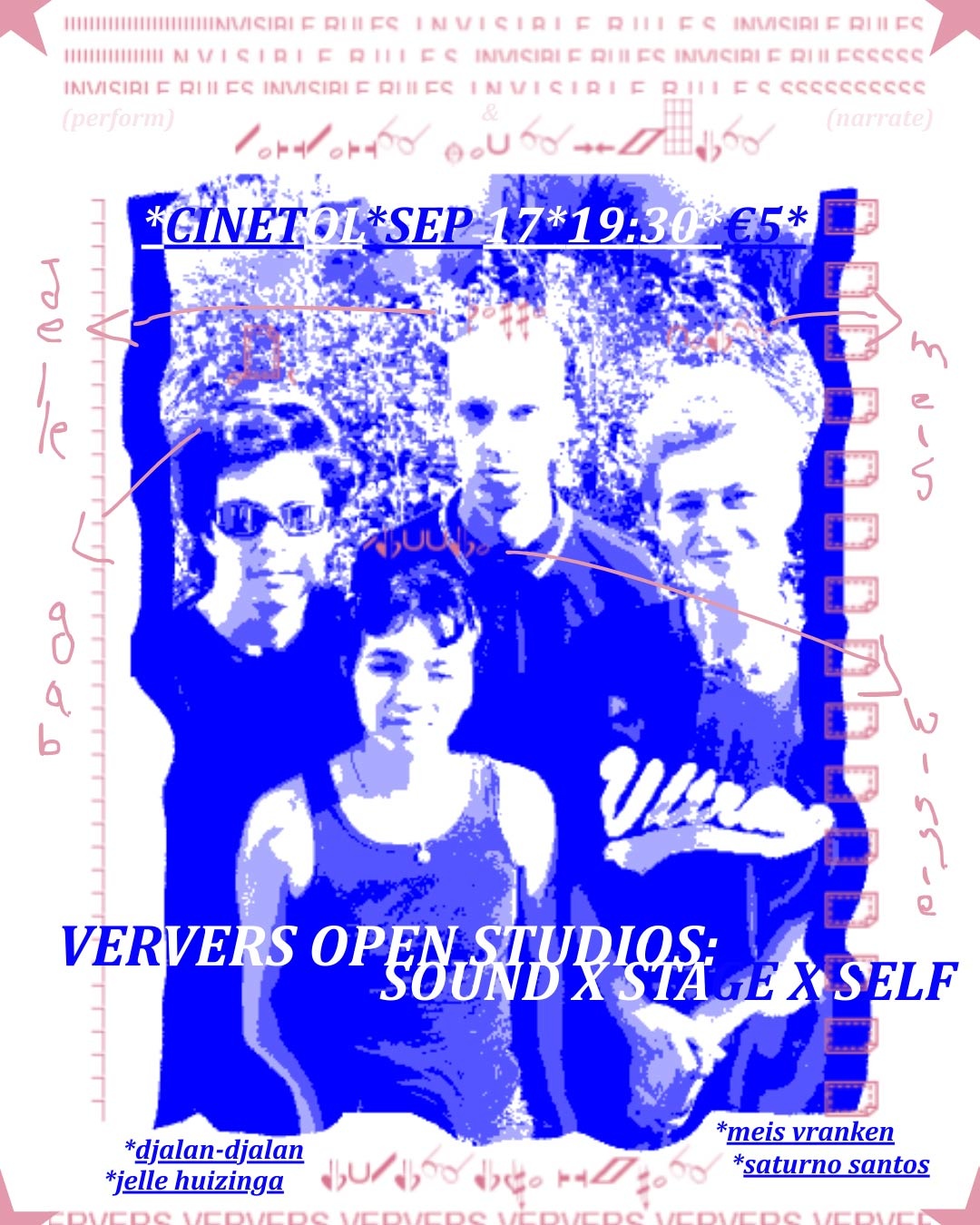 Wat zijn de onzichtbare regels van het muziekpodium, en hoe breek je ze? Hoe vertellen we onszelf en onze klankwerelden via performance? Dit zijn de vragen die de muzikanten Winnie Conradi, Gabriel de Oliveira, Jelle Huizinga en Meis Vranken naar VERVERS brachten, een multimedia muziekresidentie geïnitieerd door Cinetol.