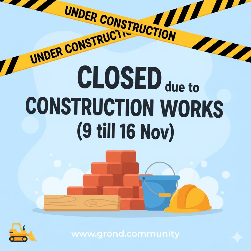 From Sunday November 9th till Sunday November 16th GROND is closed due to construction works. There will be NO public activities in this period.