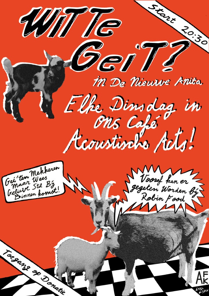Elke dinsdag korte akoestische acts op ons kleine podium! Vanaf zes uur kan er gegeten worden bij Robin Food. Entree is gratis maar een donatie voor de spelende artiesten wordt gewaardeerd! — Every Tuesday, short acoustic acts on our small stage. Tonight, restaurant Robin Food is open from 6. Entry is free but a donation for preforming artists is appreciated!Timm Knipt! Vanavond hebben we een in-house kapper, Timm! De schade is een donatie vanaf 40,- en je kan een afspraak bij hem boeken op 3 verschillende manieren: Via de telefoon: +31 640058346, Instagram of e-mail.