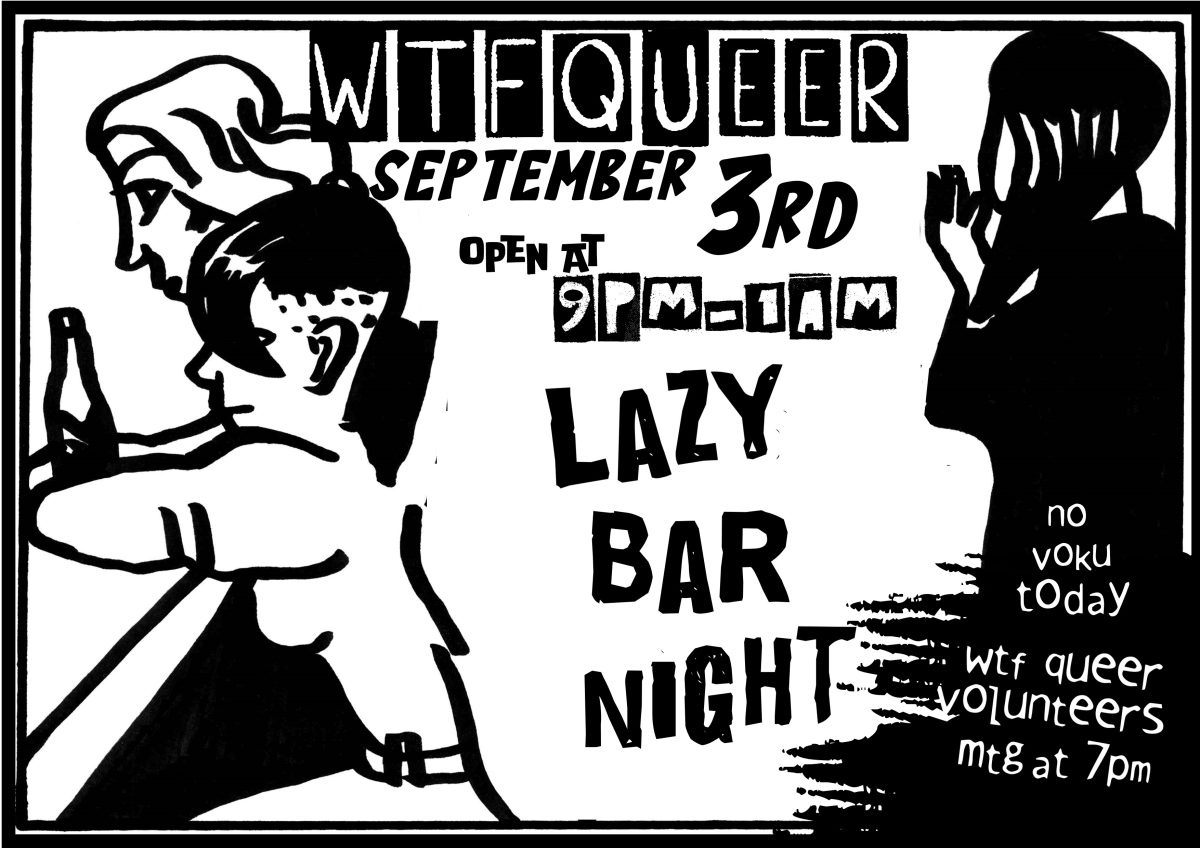 OPEN AT 9PM /No Voku Today/ WTF Q monthly mtg at 7pm/ all queers welcome