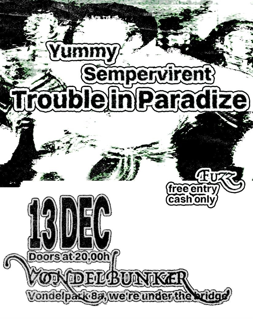 Trouble In Paradize - A casual and confusing gathering ended up growing the roots of Trouble In Paradize. The band itself can’t even explain how it came to be. A multinational group of strames springing from the small country of Luxembourg. With a big and loud sound both in studio and live, Trouble In Paradize mixes inner chaos, rebellion and confusion through grunge, hard rock, metal, psychedelia and funk. Performing arena-like shows with a DIY feeling, the band will set the stage on fire, no matter what the size of the venue is.