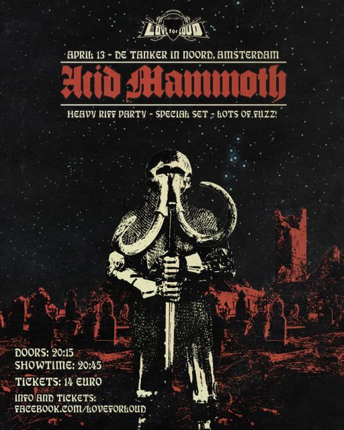 Love for Loud : Acid Mammoth Sunday, Apr 13, 08:00 PM-11:30 PM Sunday 13 April 23:30 de Tanker in Noord Nieuwe Leeuwarderweg 15, 1022 BN Amsterdam love4loudmetalconcertcultuurvitrinediy
